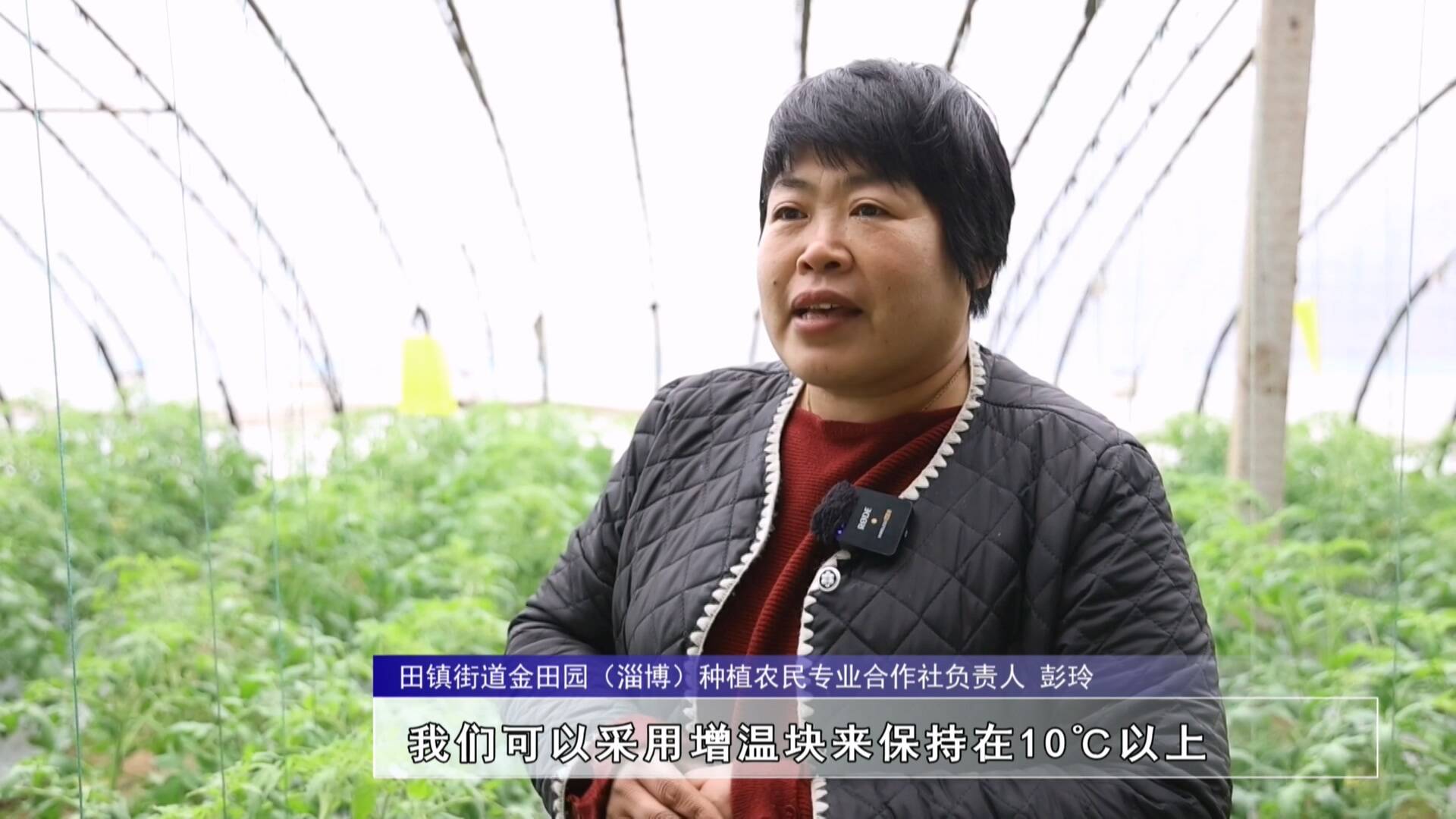 田镇街道金田园(淄博)种植农民专业合作社负责人 彭玲:西红柿大棚里边的温度和湿度是非常关键的,我们采用增温块来保持在10℃以上。再就是(控制好)湿度,不要浇水。晴天以后,及时喷施酵素菌肥,预防西红柿的突长。再就是及时地检查雪,如果达到5厘米以上的厚度,我们让社员们及时地清理,保证西红柿大棚的透光见亮。